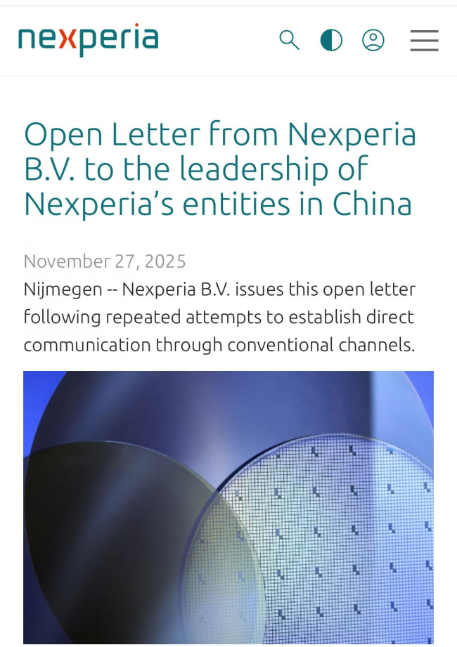 荷兰安世呼吁安世中国参与对话、加速供应链恢复 荷兰安世半导体近日罕见以公开信形式向安世中国领导层发出呼吁,希望双方尽快恢复沟通,以避免全球客户供应链陷入全面停滞。相比此前一味归责的强硬口径,这一次荷兰方面的措辞明显有所软化,更强调合作与恢复供应的紧迫性。一、荷兰安世公开施压:对话迫切、... 11-28