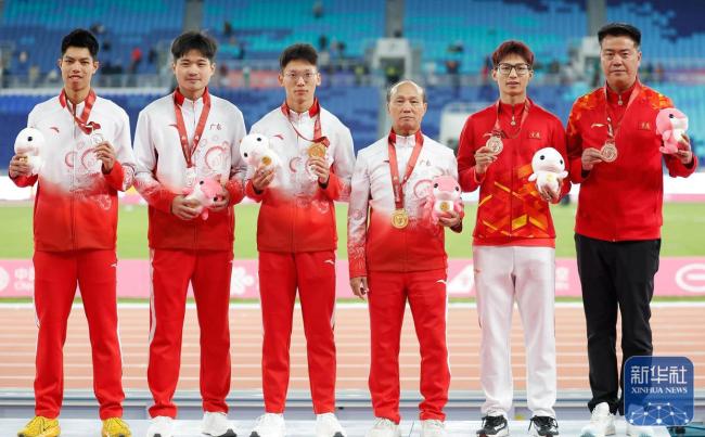 施君豪20秒30勇夺全运会200米冠军 广东队包揽金银牌 11月19日,第十五届全国运动会田径项目男子200米决赛在广州举行。广东队选手施君豪获得冠军,他的队友林健豪获得亚军,重庆队选手官鑫获得季军。颁奖仪式上,施君豪、林健豪和官鑫与教练合影留念 11-20