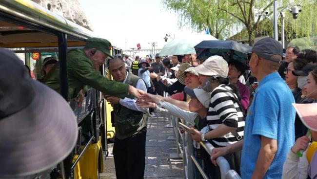 老人乘车进景区 游客不吐槽反而欢迎 致敬抗美援朝英雄 河南省洛阳市的龙门石窟是世界文化遗产及国家5A级旅游景区,景区日常禁止车辆进入,只有急救和应急车辆例外。近日正值洛阳牡丹花会游客高峰期,龙门石窟研究院破例允许几辆车进入景区核心区域,车上坐着28名平均年龄90多岁的抗美援朝老兵 04-12