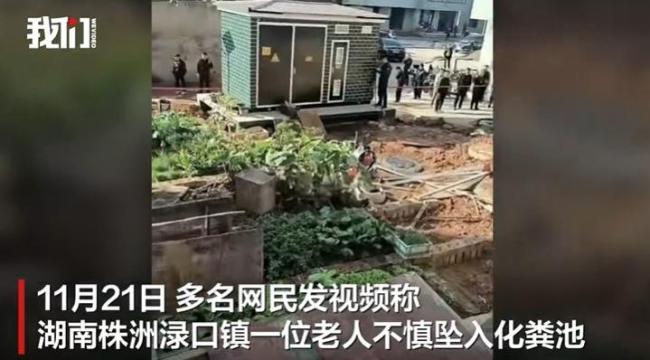 湖南一老人不慎坠入化粪池身亡 搜救后确认不幸遇难 11月21日,多名网民发布视频称,湖南株洲渌口镇一位老人不慎坠入化粪池。目击者表示,事发后警方和消防部门迅速赶到现场进行搜救。当天中午,渌口镇应急办确认已经找到坠入化粪池的老人。据渌口镇政府值班室消息,老人不幸身亡,遗体已被打捞出来 11-21