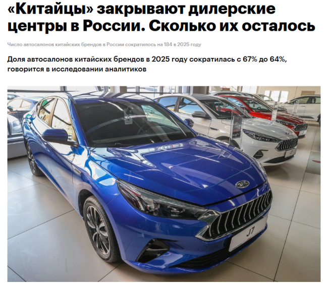 俄罗斯淘金热退烧:中国汽车一年关闭643家门店,年销量下降23% 据俄罗斯媒体1月21日报道,到2025年,俄罗斯天然气工业银行汽车租赁公司发布的一份研究报告显示,俄罗斯汽车经销商总数将减少至4076家。 01-23 飞灵汽车