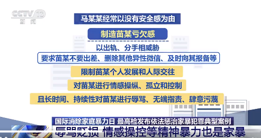 辱骂贬损情感操控也是家暴:男子借口没有安全感把女友逼上绝路 在山东临沂检察机关办理的马某某虐待案中,马某某与女友苗某确立恋爱关系后,二人租房共同生活,并与对方家长见面、参加对方家庭聚会,有结婚意愿。马某某经常以没有安全感为由,制造苗某亏欠感,以出轨、分手相威胁,要求苗某不要出差、删除其他异性微信、... 11-26
