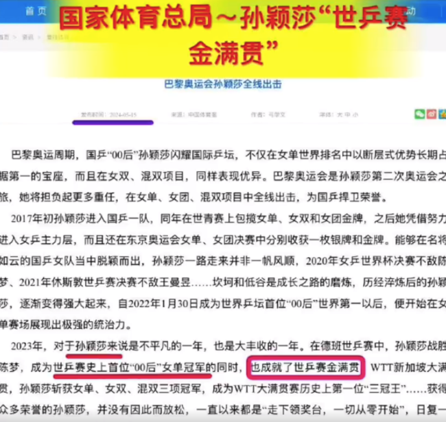 孙颖莎世乒赛首位女子双圈金满贯 孙颖莎是世乒赛首位女子双圈金满贯乒乓球的世锦赛金满贯达成需要拿到单打、女双、混双、团体四项冠军,孙颖莎四项冠军已拿了两圈,已成为世乒赛首位女子双圈金满贯。... 11-24