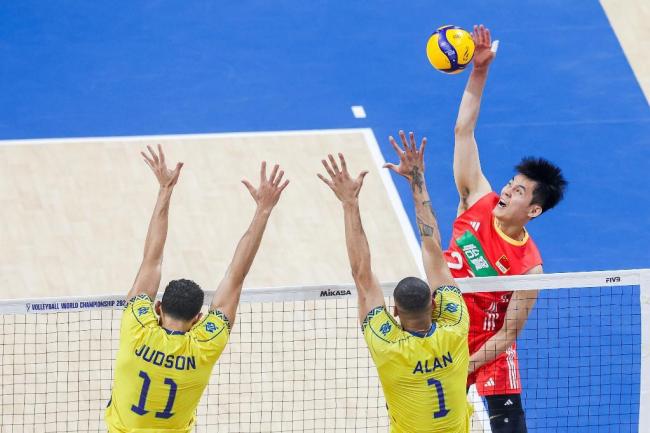 世锦赛中国男排1-3不敌巴西无缘开门红 彭世坤12分刘力宾10分 首秀虽败犹荣 9月14日,2025年世界男排锦标赛小组赛进入第三个比赛日,中国队在H组首秀中以1:3负于巴西队。首局比赛中,中国队表现出色,彭世坤和刘力宾先后发球直接得分,以9:4领先。尽管巴西队试图通过强攻追分,但中国队多次成功防守并反击得分 09-15